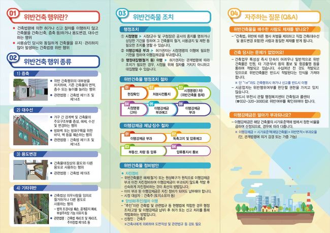 이에 부천시는 사례집에 위반건축물의 정의와 종류를 시민들이 쉽게 이해할 수 있도록 그림과 함께 표기하고, 행정조치와 징수 절차 안내를 통해 자진 정비를 유도할 계획이다.