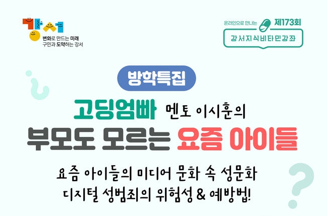 서울 강서구는 방학 특집 ‘부모도 모르는 요즘 아이들‘을 주제로 제173회 강서지식비타민강좌를 개최한다고 밝혔다.