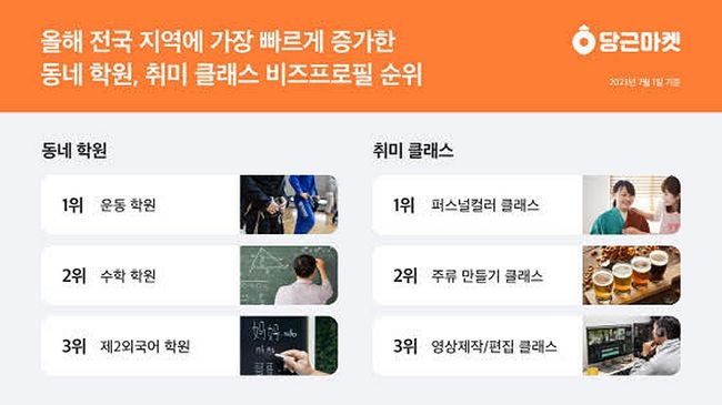 당근마켓, 동네 `학원`, `취미 클래스` 데이터 순위 공개