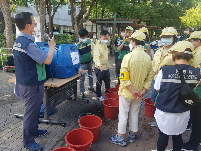 2022년 실시된 을지연습에서 구 관계자들이 비상급수훈련을 실시하고 있다