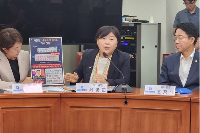 서영교 최고위원(3선, 서울 중랑갑)은 14일 최고위원회의에서 故 채수근 상병의 수중 수색 과정에서 있었던 해병대 1사단장의 무리한 지시와 안전 조치 미흡에 대한 진실을 다시 한번 밝히고, 박정훈 전 해병대 수사단장 관련 수사 외압 의혹에 대해 문제를 제기했다.