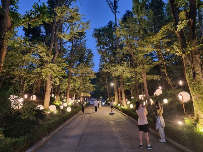 관악구, 낙성대공원 내 별빛산책길 새롭게 탄생! - 낙성대공원 내 별빛산책길 야간 경관조명 정비로 야간 방문객에게 색다른 볼거리 제공 - 볼라이트, 별구조물로 구성된 LED 조형물... 연중 일몰 후부터 자정 전까지 운영