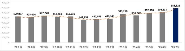 7월 신고현황을 보면, 전월 대비로는 13.2%(7만 9,708건), 전년 같은 달 대비로는 31.3%(16만 3,044건)이 증가하는 등 꾸준한 오름세를 보였다.