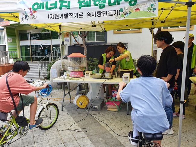 관내 어린이공원에서 열린 에너지 축제에는 많은 주민과 어린이들이 참여해 ▲친환경 물주머니 만들기 ▲EM 활성액 활용 비누 만들기 ▲태양열 집전기 활용 ▲종이가방을 활용한 리사이클링 등을 체험하며 탄소중립 실천을 배우는 시간을 가졌다. 특히 ▲자전거 페달 발전기로 만드는 솜사탕 체험이 큰 인기를 끌었다.