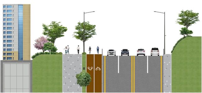 서울시가 서부간선도로 내 영등포구 구간(목동교~신정교, 2km)과 금천구 구간(광명교~금천교, 1.7km)의 차로 폭을 줄이고, 도로변에 보도와 녹지를 조성한다. 사진은 보행 및 자전거 이용시설 조감도.