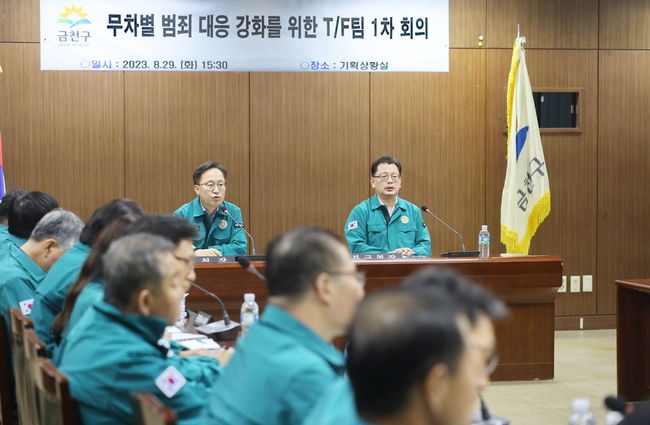 8월 29일 유성훈 금천구청장 주재로 `무차별 범죄 대응 강화를 위한 전담팀(TF)` 회의를 개최했다
