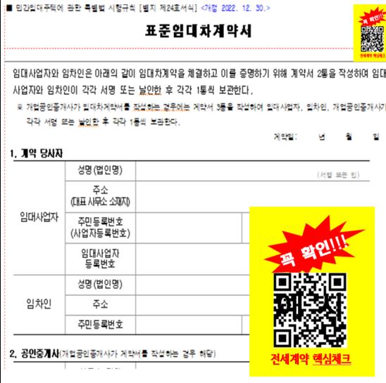 전세계약서 상단에 부착될 QR코드 스티커