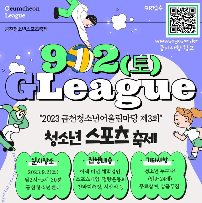 유성훈 금천구청장은 “청소년어울림마당은 청소년들이 열정과 재능을 마음껏 펼칠 수 있는 행사다”라며, “스포츠 축제 ‘G리그’에 참여해 친구들과 함께 운동하고, 즐거운 추억을 만들어가길 기대한다”라고 전했다.