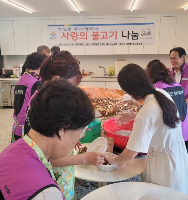 금천굽는 가산동 복지협의체(이하 협의체) 주관으로 8월 31일 가산동주민센터에서 ‘사랑의 불고기 나눔’ 행사를 진행했다고 밝혔다.