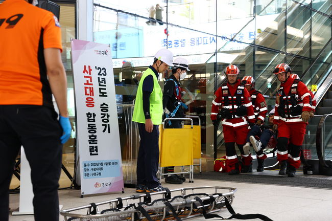 구로구가 11일 구로지타워에서 2023년 승강기 사고대응 합동훈련을 실시했다고 밝혔다.
