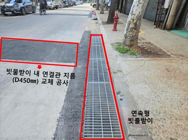 이에 구는 일반 빗물받이보다 5배나 큰 연속형 빗물받이 240개를 설치한다. 연속형 빗물받이는 빗물을 빠르게 배수함으로써 침수 피해를 원천 차단하는 데 도움이 된다.