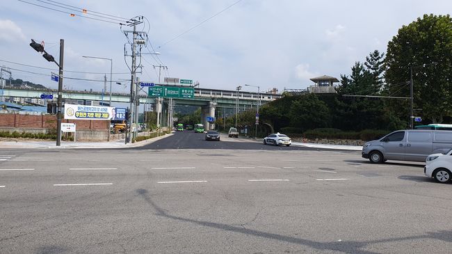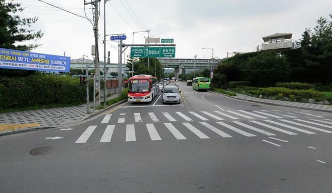 공사 후 (우회전 차로 신설로 4차로에서 5차로로 넓혀졌다.)