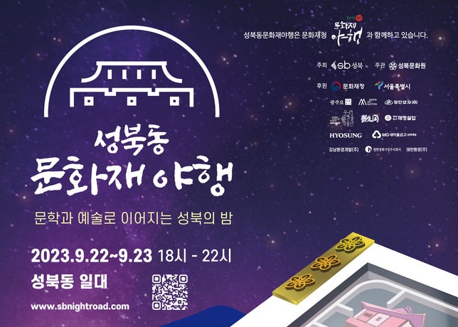 서울 성북구가 주최하고 성북문화원이 주관하는 ‘성북동문화재야행 - 문학과 예술로 이어지는 성북의 밤’이 오는 22일부터 23일 18시~22시까지 성북동 일대에서 펼쳐진다.
