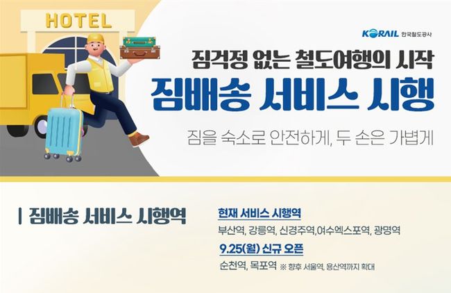 또한, 지난해 시범운영을 마친 짐 배송 서비스도 올해부터 본격적으로 운영한다. 순천, 목포역은 9월25일, 서울, 용산역은 12월에 짐 배송 서비스를 제공할 계획이다.