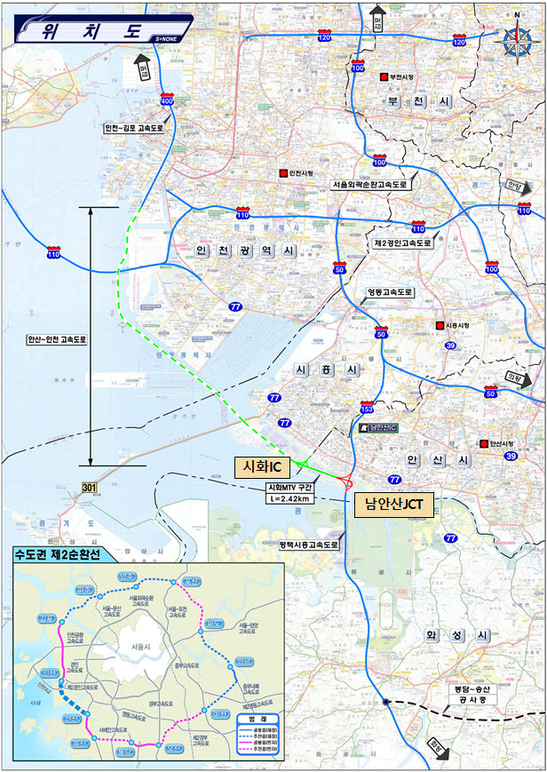안산시는 고속국도 제400호선인 수도권 제2순환고속도로 시화 IC(나들목)~남안산 JCT(분기점) 2.65km 구간(4차로)이 개통돼 안산시민의 교통편의 향상은 물론 서해안 대표 관광지인 대부도로의 접근성이 한층 개선됐다고 26일 밝혔다.
