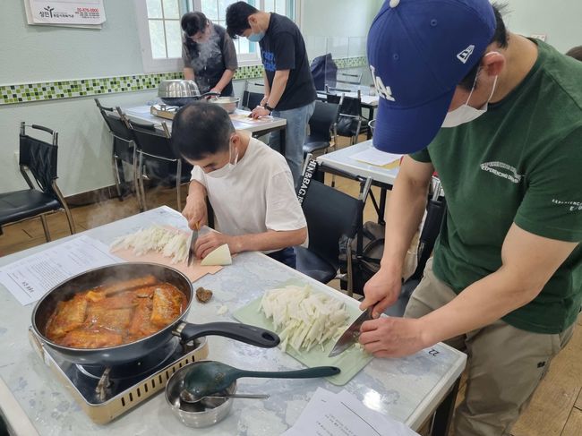`행복한밥상`에서 중장년 1인가구들이 음식을 만들고 있다