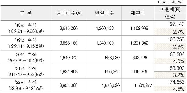2018-2022 추석 기차표 반환 현황