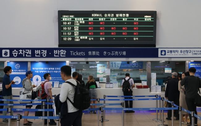2023년 추석 연휴 하루 전 코레일 승차권 발매 창구 모습
