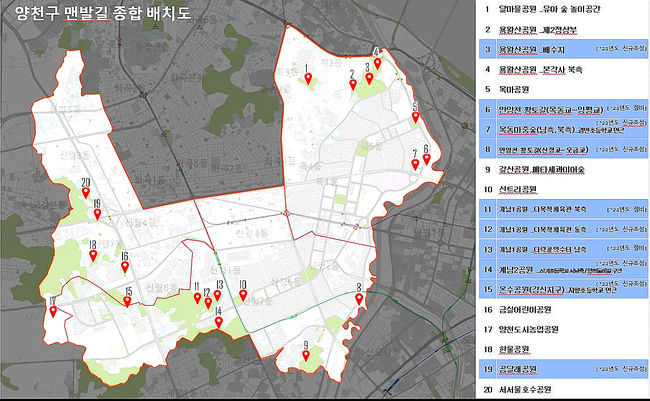 양천구 맨발 흙길 조성 위치도