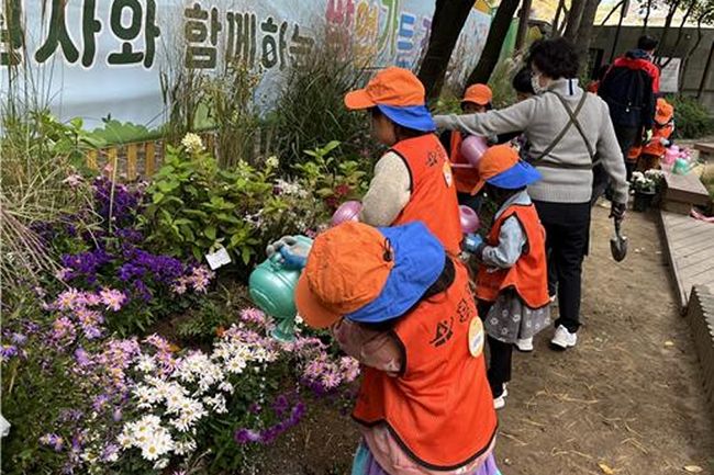 지난 20일 후암어린이집 원아들이 해방촌 마을정원사와 정원을 가꿨다.