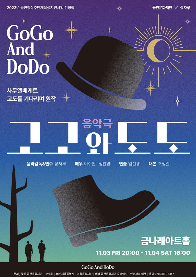 금천문화재단은 11월 3일과 4일 이틀간 금나래아트홀에서 부조리극의 대명사인 연극 ‘고도를 기다리며’를 음악극으로 재해석한 ‘고고와 도도’ 공연을 개최한다고 밝혔다.