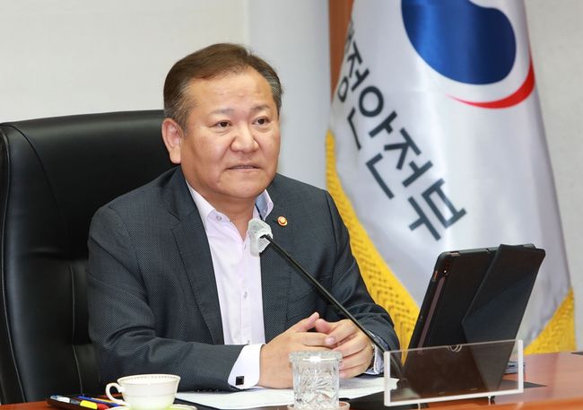 이상민 행정안전부 장관이 지난 3일 오후 서울 종로구 정부서울청사에서 열린 현장 · 민생과제 추진상황 및 연말 · 연초 주요 추진과제 점검회의에 참석하여 모두발언을 하고 있다.
