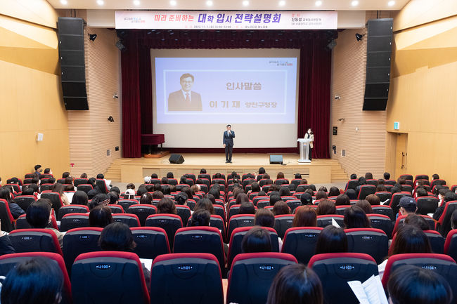‘합격 지름길 알려드려요’ 양천구, 대입 합격 전략 설명회 - 11/23 오전 10시 양천문화회관 대극장에서 수험생·학부모 600여 명에 맞춤형 입시정보 제공 - 11/13부터 사전 모집, 사전 신청한 참가자에게 정시배치표와 전략 자료집 배부