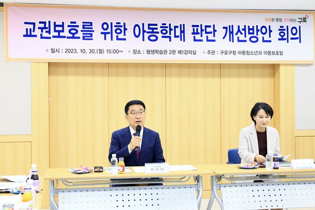 구는 지난달 30일 초‧중‧고 교사 9명과 교육청 담당자가 참석한 가운데 ‘교권 보호를 위한 아동학대 판단 개선 방안 회의’를 개최하고 이 같은 사항을 논의했다.
