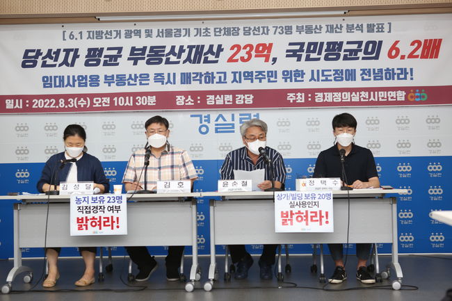 경제정의실천시민연합은 3일 서울 종로구 경실련 강당에서 기자회견을 열고 ‘광역·서울·경기단체장 73명 부동산 재산 분석 결과’를 발표했다.