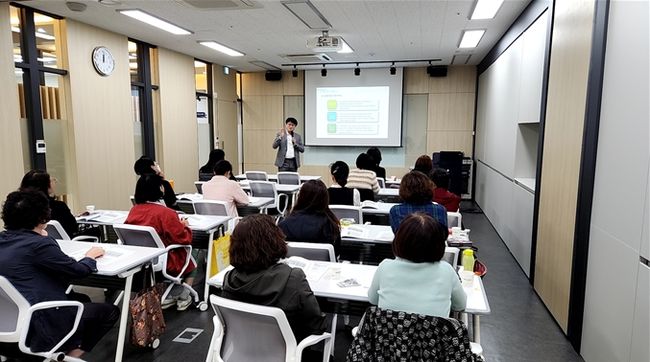 중장년 교육생들이 지난 정리수납 및 가사관리전문가 교육을 듣고 있다.