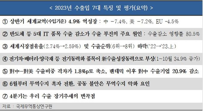 2023년 수출입 7대 특징 및 평가(요약)