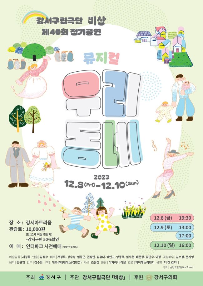 서울 강서구는 오는 8일~10일 강서아트리움에서 강서구립극단 ‘비상’의 제40회 정기공연인 뮤지컬 ‘우리동네’를 개최한다고 밝혔다.