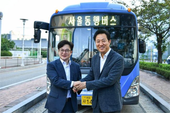 서울시는 7일 오전 9시 30분 서울시청 6층 영상회의실에서 ‘서울시-김포시 기후동행카드 참여 업무협약’을 체결했다고 밝혔다. 협약식에는 오세훈 서울시장과 김병수 김포시장이 참석해 양 도시 교통 현안 해결을 위한 다양한 논의를 나눴다.