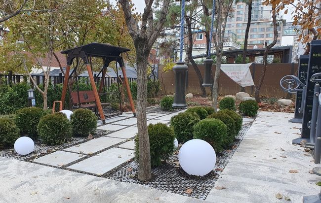 쌈지 마을마당 정비 후 모습 -흔들벤치가 설치된 모습