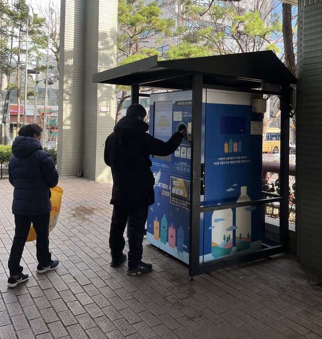 주말 아침 강동구청 뒤편에는 주민들이 플라스틱 페트병과 캔을 담아와 분주히 자판기 모양의 회수기 안으로 집어넣는 모습을 심심치 않게 볼 수 있다. 이것은 강동구가 설치한 재활용 무인 회수기다.