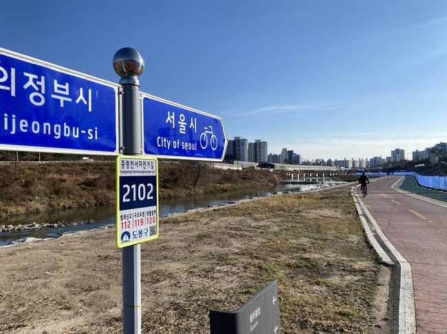 중랑천 산책로 · 자전거길 기초번호판 설치 사진