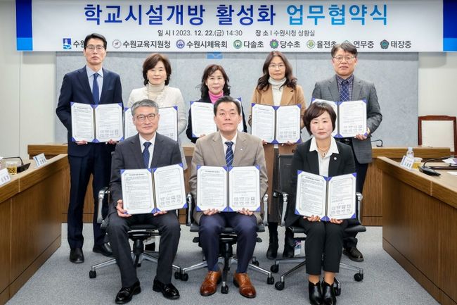 수원시는 지난 22일 수원교육지원청, 수원시체육회, 관내학교 5개교와 ‘학교시설개방 활성화 업무협약’을 체결했다고 밝혔다.