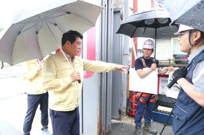 지난 8월 박준희 관악구청장이 태풍 `카눈` 북상에 대비해 관내 공사장 긴급 현장점검에 나섰다.