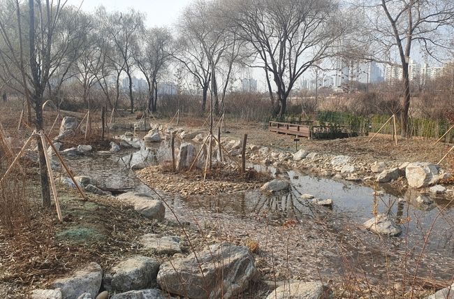 구는 2023년 9월부터 12월 중순까지 생태계 보전 부담금 반환사업의 일환으로, 양평동 270-1번지 일대의 ▲안양천 둔치 내 습지 생태계의 기능 회복 ▲소생물 서식을 위한 완충 공간 확보 ▲생태학습 공간 조성 등의 공사를 추진했다.