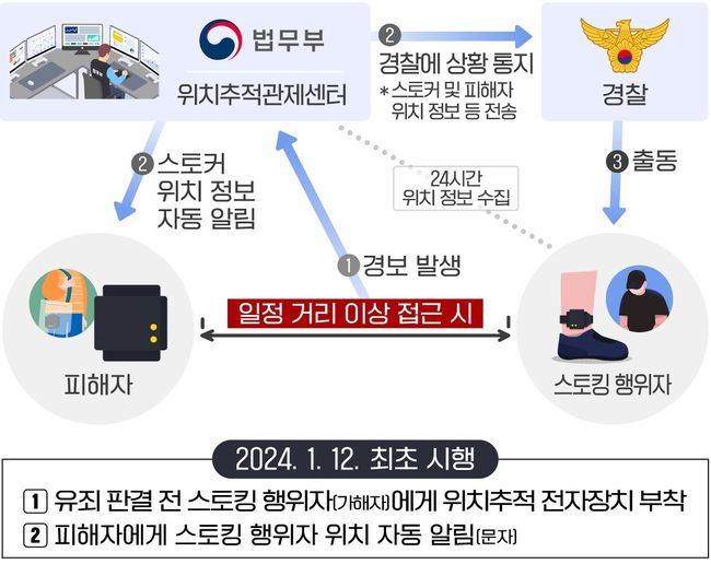 법무부, 스토킹 가해자 위치추적 조치・피해자 국선변호인 도입 - 피해자 보호・지원 강화 위한 개정 `스토킹처벌법`・`전자장치부착법` 시행 - 1월12일부터 강화된 ‘피해자 보호 시스템’ 적용
