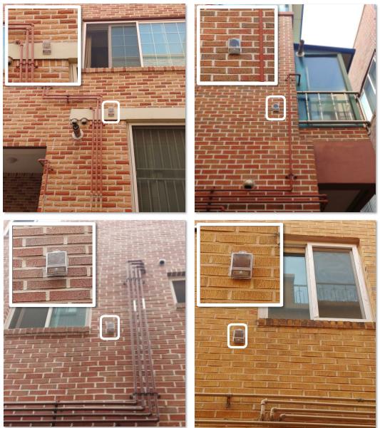 공동주택 가스배관 옆 건물 외벽에 설치한 침입감지장치