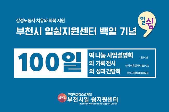 부천시가 감정노동자의 치유와 회복을 위해 지난 4월 28일 전국 최초로 문을 연 ‘부천시 일쉼지원센터(이하‘센터’)’가 개소 100일을 맞았다.
