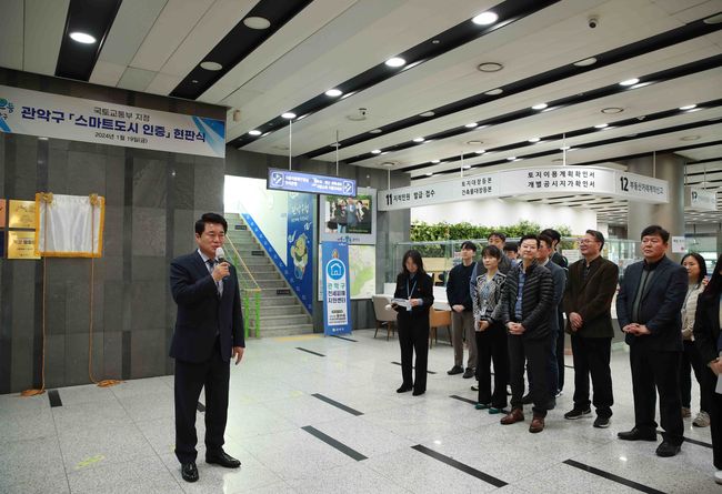 ‘스마트도시 인증’ 현판식 행사에는 박준희 관악구청장을 비롯한 관악구의원, 구청 국·과장 등 30여 명이 참석해 자리를 빛냈다.