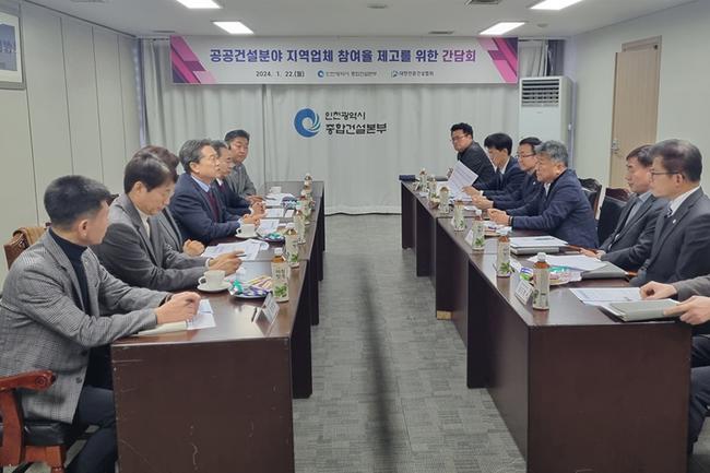 인천광역시 종합건설본부는 1월 22일 본부 회의실에서 2024년도 공공건설 지역업체 참여율을 높이기 위해 유관기관 등과 간담회를 개최했다고 밝혔다.