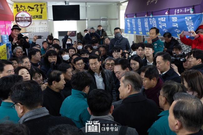 윤 대통령은 면담을 마치며 "힘드시겠지만 명절 잘 쇠시고 정부를 믿어달라"고 상인들을 다시 한번 위로했다.