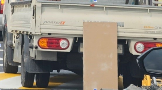 트럭이 종이 합판으로 번호판을 가린 채 도로 위에 정차해 있다(제공=마포구)
