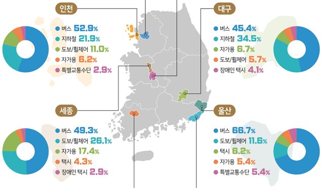 다만 교통약자별 이용형태는 다소 상이했는데, 지역내 이동에서 고령자는 대중교통 외에 도보 이동(17.3%)이 높은 비중을 차지한 반면, 장애인의 경우 장애인택시(10.7%)와 특별교통수단(7.1%) 이용비중이 타 교통약자에 비해 높았다.
