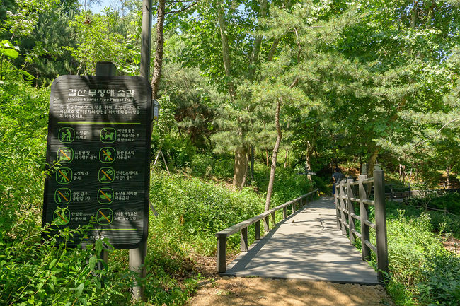 갈산공원 무장애숲길은 1구간 향림사~서울모터스 상부(470m), 2구간 서울모터스 상부~어린이교통안전교육장(260m)으로 나뉘어 2020년에 조성을 완료한 바 있다. 구는 이어 지난해부터 올해까지 3단계 구간인 어린이교통안전교육장~갈산 유아숲체험장(490m)의 공사를 마쳤다.