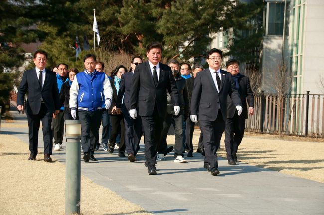 제22대 국회의원선거에 출마하는 더불어민주당 소병훈 후보(경기 광주시 갑)가 21일 오전, 국회의원 후보등록을 완료하고 경안근린공원 내 현충탑을 찾았다.