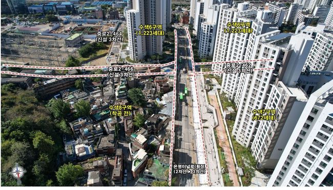 수색6·7·8구역 재개발조합은 은평터널로 일부 구간의 450m 도로를 확장하고 성토공사를 시행할 예정이다.